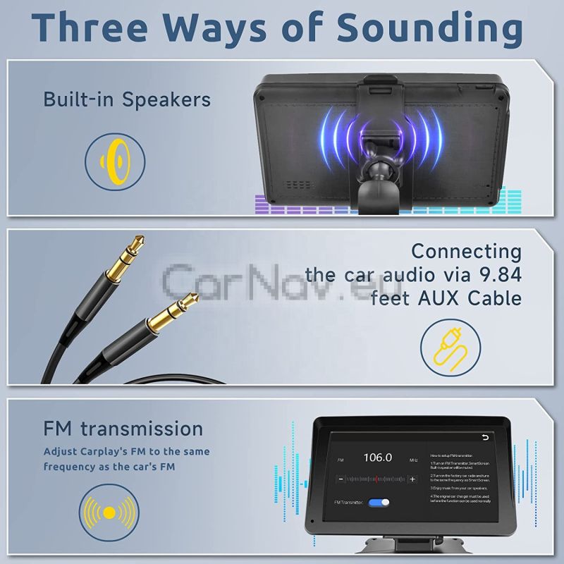 6. Интелигентна свързаност: поддържа IOS CarPlay/Android Auto/BT музика/FM предаване/Airplay/MirrorCast/FM предавател